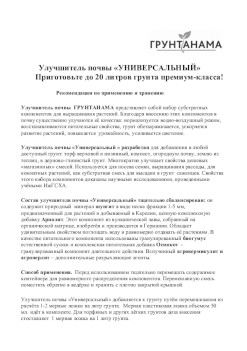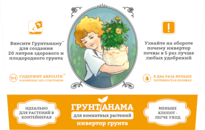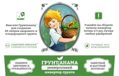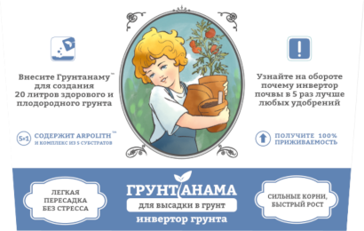 Попробуйте выращивать растения вместе с улучшителем ГРУНТАНАМА. Вы увидите отличный результат при заметно меньших затратах труда и времени.